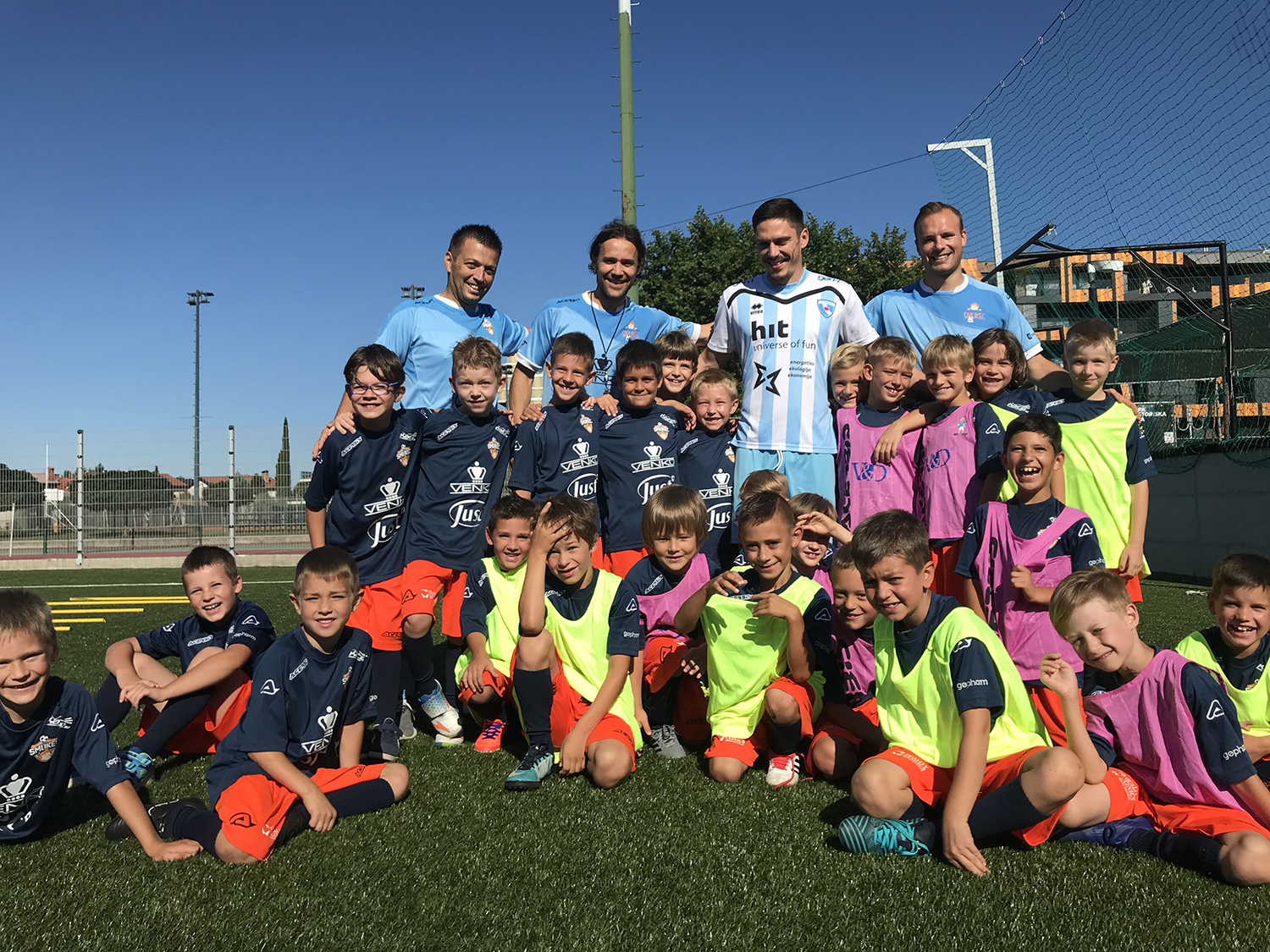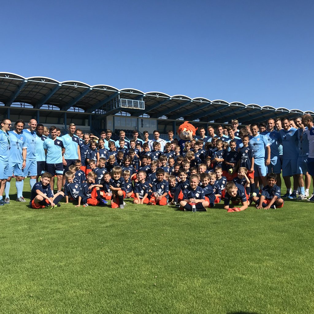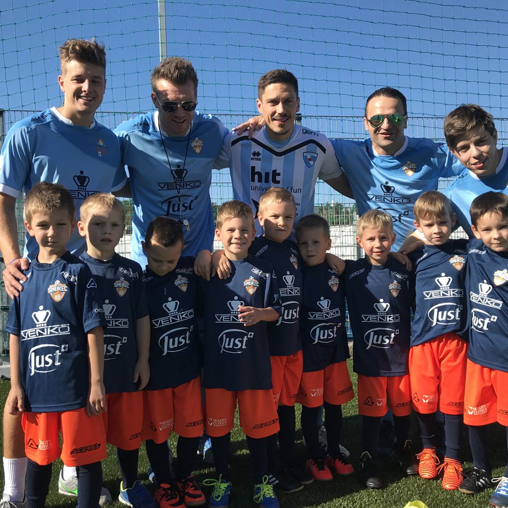 Drugi dan Nogometnega kampa Smukec je bil s soncem obsijan v pravem pomenu besede. Smukci so odgarali trening ter bili deležni obiska renomiranih nogometnih gostov. Takoj po začetku treninga je Smukce namreč presenetil z obiskom letošnji ambasador Miran Burgič. Z vsako skupino je oddelal 15 minut treninga in vsi prisotni smo opazili, da se je v Miranu prebudila otroška razposajenost. Pred treningom smo ga opozorili, da je Smukčeva energija nalezljiva, kar se je izkazalo za resnično. Nato je Miran popeljal vse Smukce do svojih bivših soigralcev na glavni stadion v Športnem parku v Novi Gorici. Trener ND Gorica Miran Srebrnič s strokovnim štabom ter igralci članske ekipe so otroke prijazno sprejeli, nakar je nastala spominska fotografija. Sledil je sadni obrok in sicer posladkali smo se z okusnimi bananami diskonta Polavček Diskont sadja in zelenjave ter razposajeno zaplesali. Video povzetek treninga je na povezavi https://m.facebook.com/story.p hp?story_fbid=1975601729137876 &id=782973808400680 .